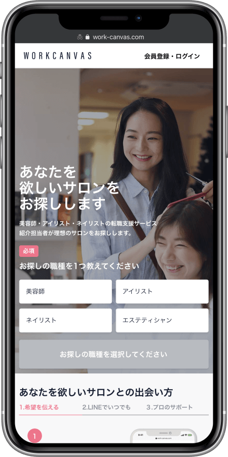 自信満々に生きる人を増やす 自分が自分を好きになれる。自分で自分に満足できる。 私たちはそんな人々が溢れる世界を目指します。 さらに詳しく HR事業 WORKCANVAS 「LINE完結型」美容師人材マッチングサービス 美容業界の皆様に、自分らしく活躍できるキッカケを。素敵なサロン様が、素敵な仲間に恵まれてもっともっと素敵に。WORKCANVASはそんな体験の提供を目指します。 WORKCANVAS Recruit 私たちが目指すのは「自走型組織」。 メンバー全員が担当範囲のプロフェッショナルとして、主体的に取り組むことを重視しています。 さらに詳しく